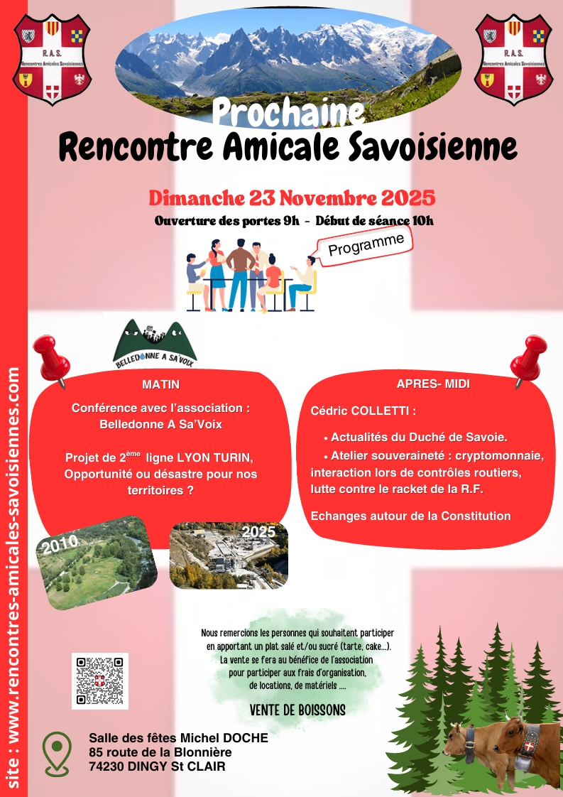 Événements, rencontres, actions citoyennes et réflexions autour de la souveraineté savoisienne : cette rubrique vous informe des temps forts de l’association et vous permet de rester connectés à la dynamique fraternelle de notre mouvement.
