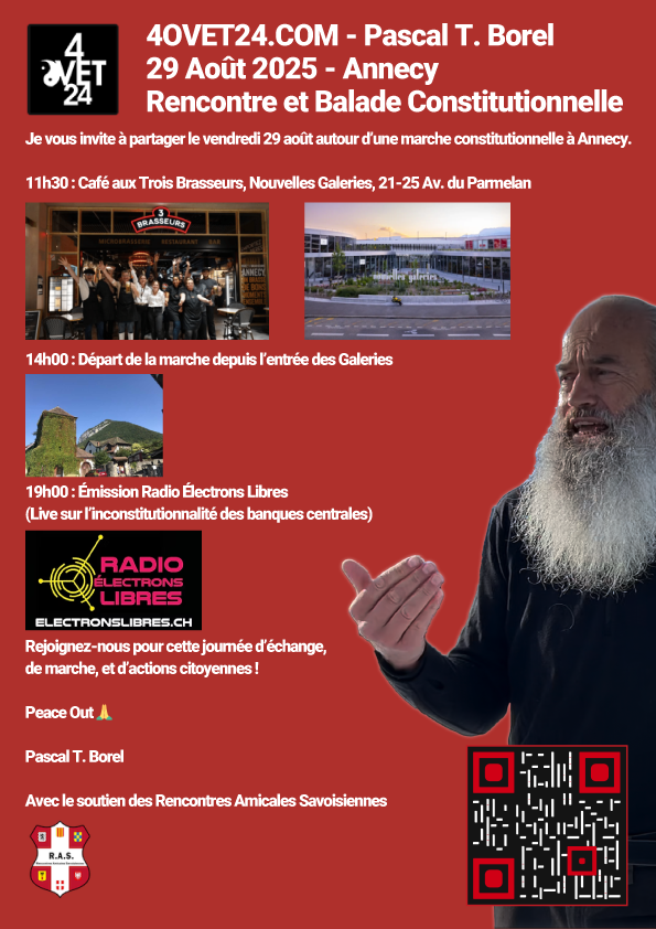 Rencontre & Balade Constitutionnelle avec Pascal T. Borel à Annecy le 29 août 2025